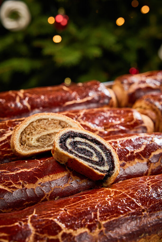 Bûche de Noël (Karácsonyi fatörzs torta – tejcsoki, karamell, pekándió, mogyoró-ropogós (10-12 személyre)